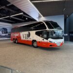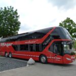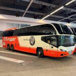 Ambiente-Bestuhlung mit Klapptischen und Fußstützen, Lesebeleuchtung, Klimaanlage, WC mit Waschraum, Stehküche mit 2 Kühlschränken und 220 Volt Anschluss, DVD und Navigationsanlage, Frontkamera, Euro 6 Motor